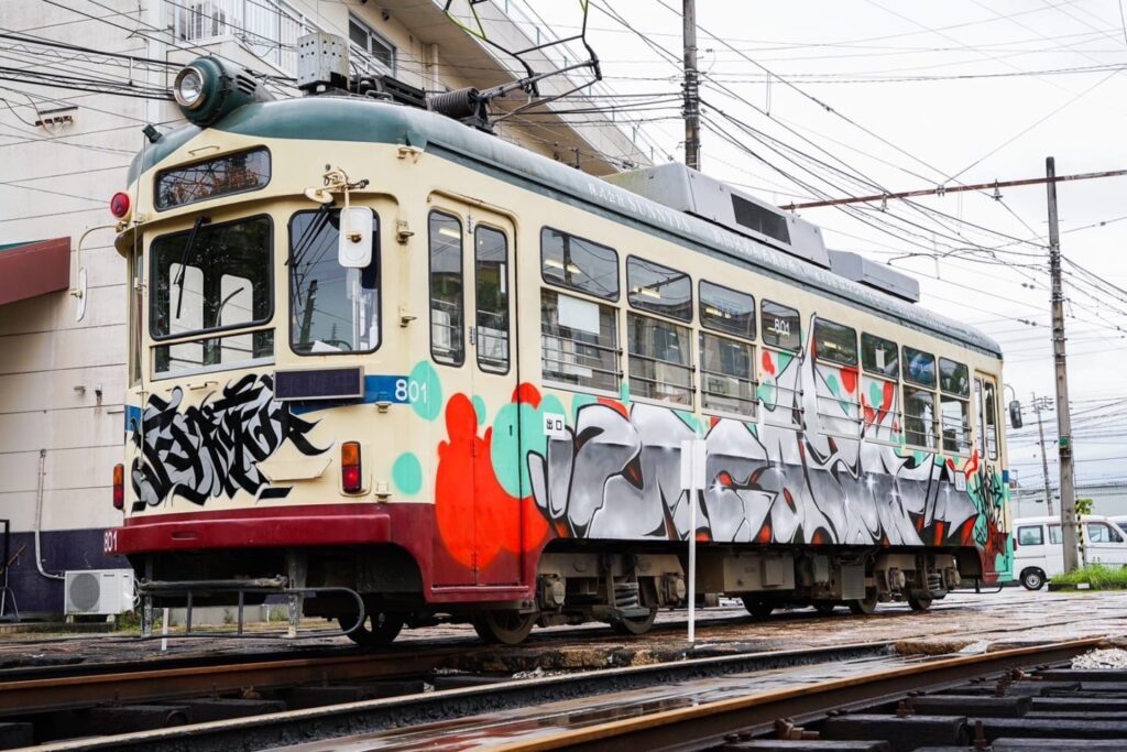 とさでん交通の協力のもと、合法的に電車1両にペイントが施され、2023年9月1日〜10月1日の期間、街中を走る車両として運行されました。普段「電車 × グラフィティ」は目にすることが少ないので、珍しい体験ができるアートです。