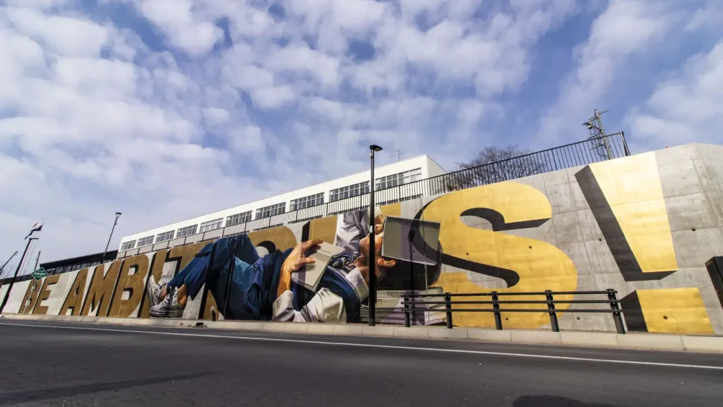 北海道北広島高等学校 壁画「BE AMBITIOUS」